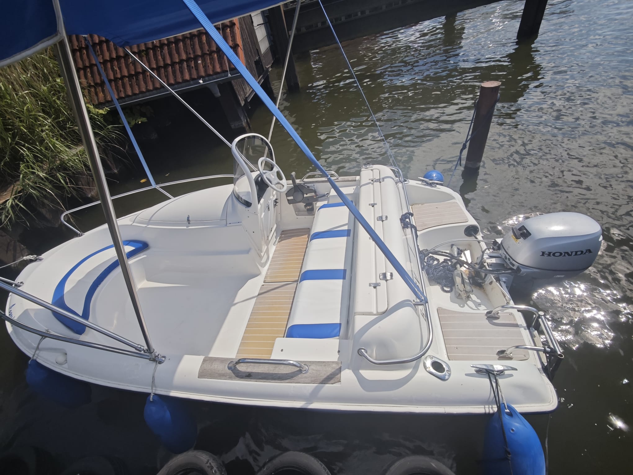 Bequeme, gepolsterte Sitze, Sonnendach und Badeleiter sorgen für Komfort und Sicherheit – sowohl für Einsteiger als auch für erfahrene Freizeitkapitäne.